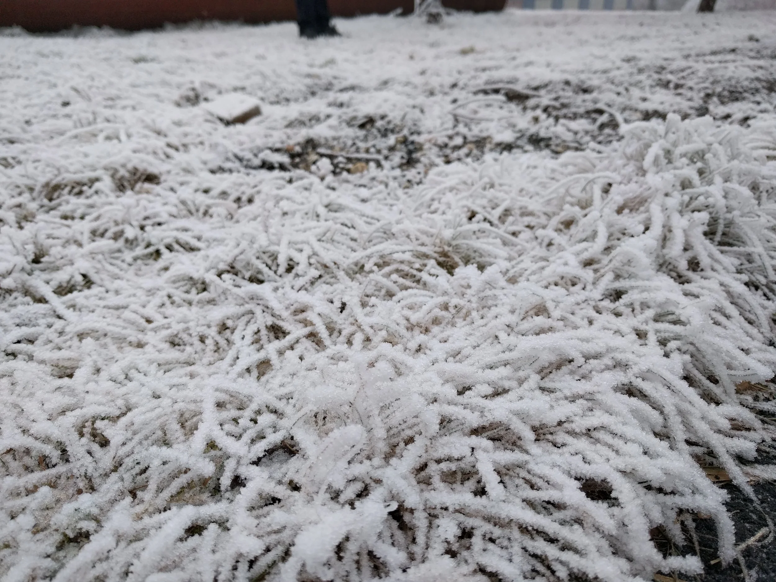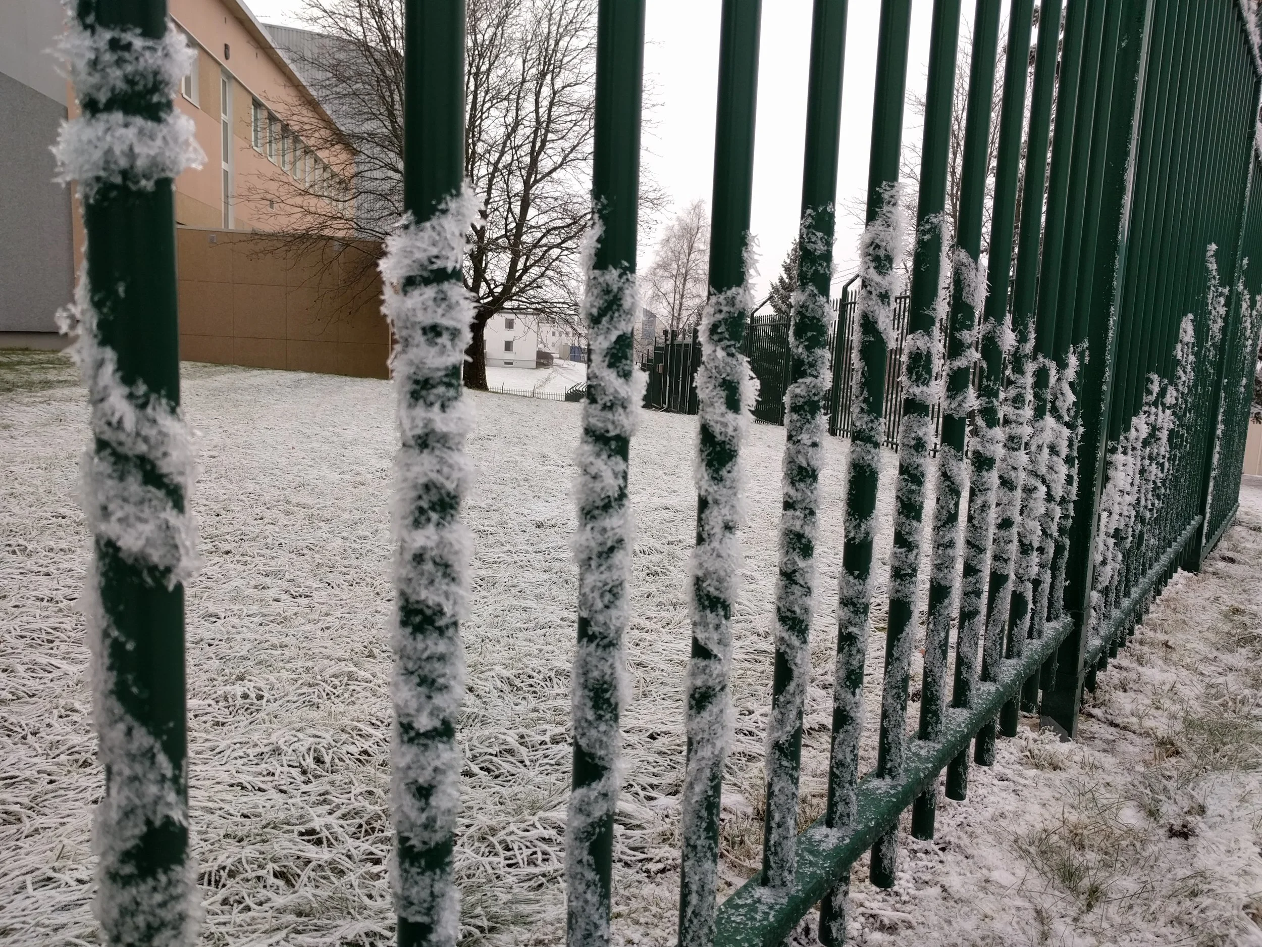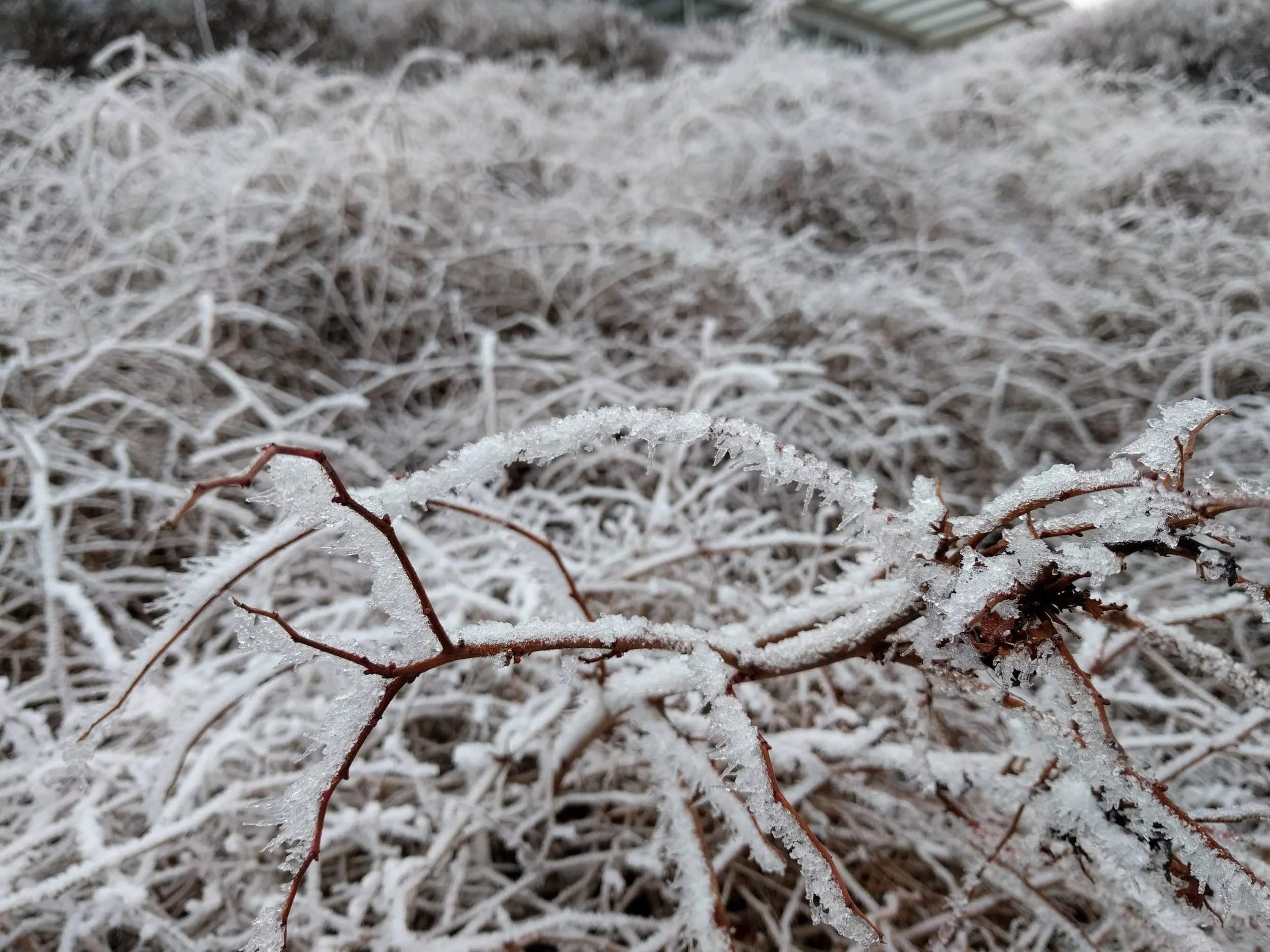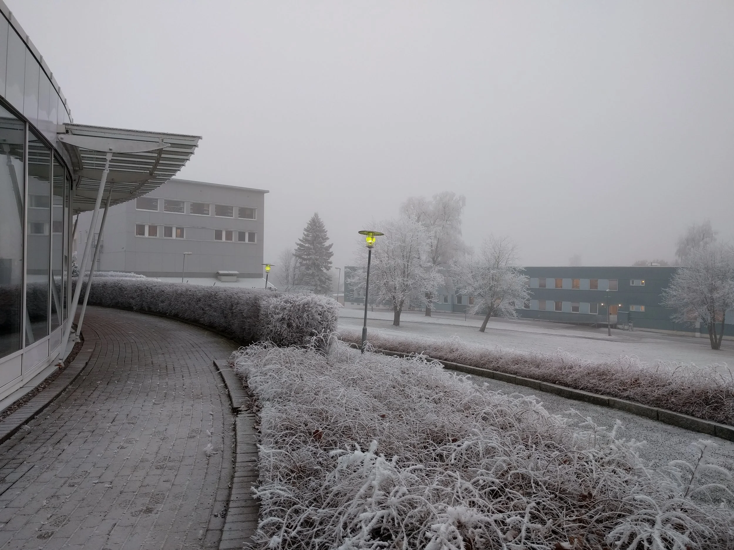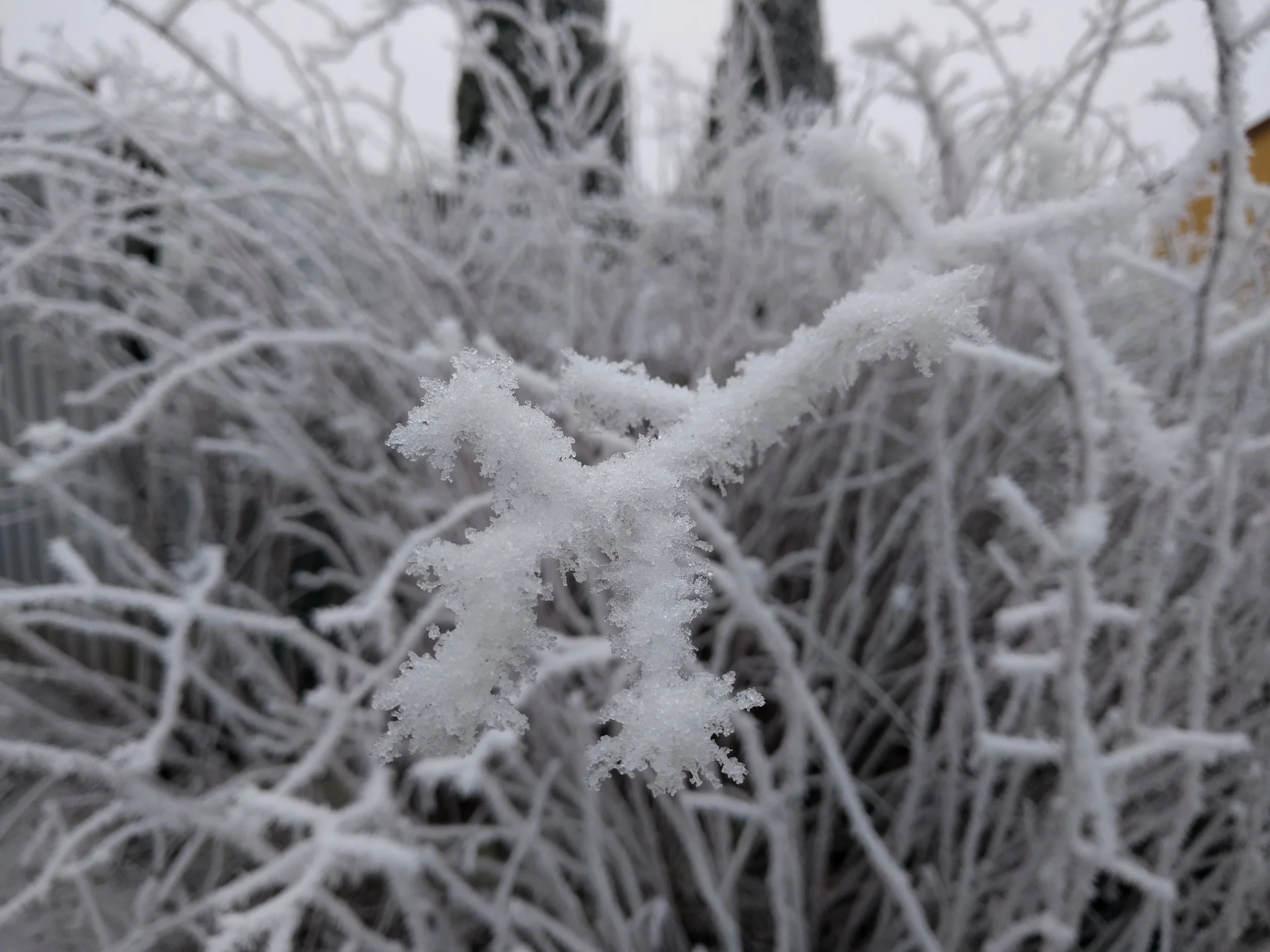 Thick winter fog deposited ice crystals on every viable surface over a few days. It seems like rime frost but a colleague from Minnesota mentioned "hoarfrost". Whether either or both, it was certain that this was a special sight in Norway.